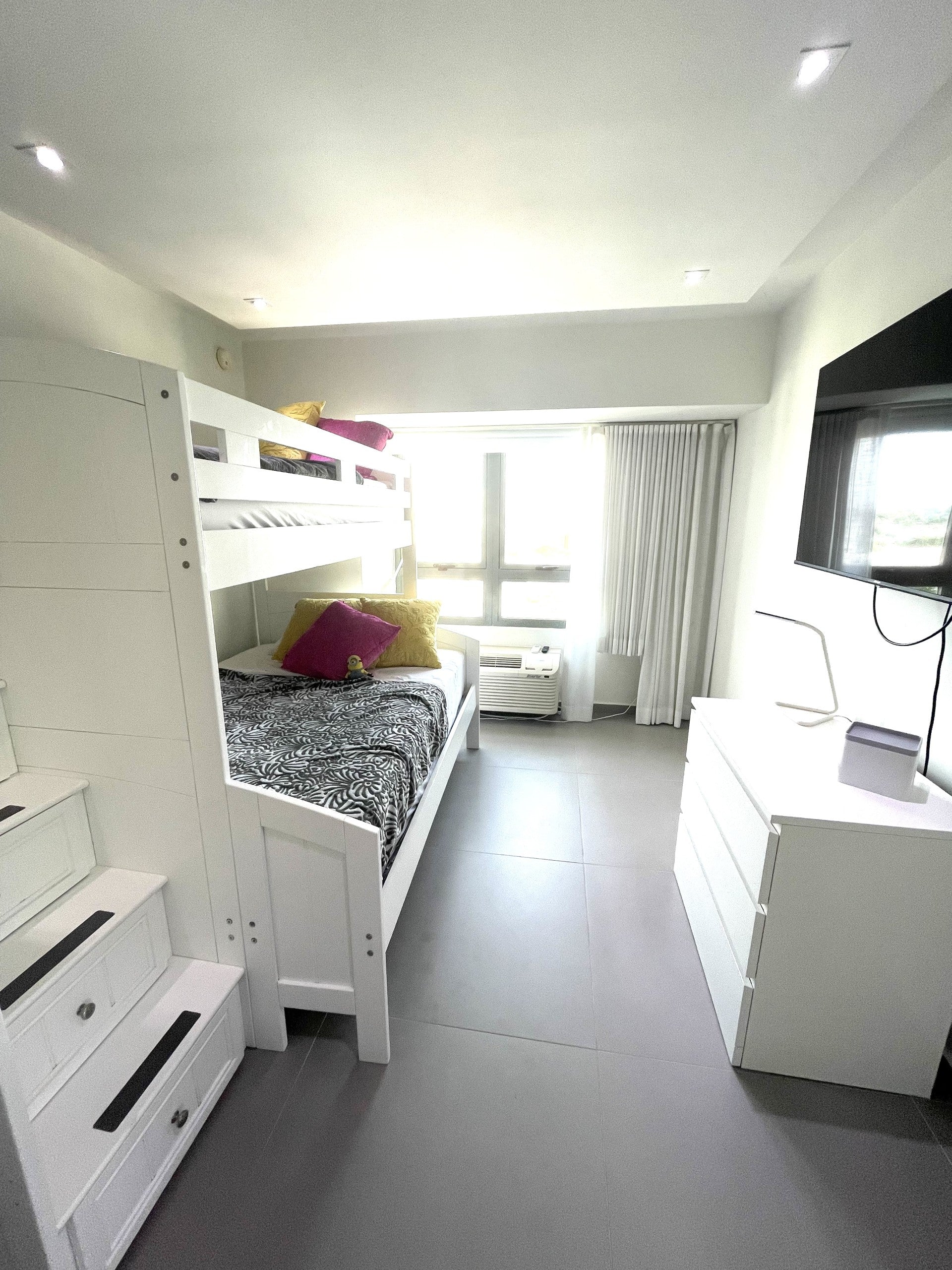Fully renovated apartment near the heart of Condado. This move-in ready apartment comes completely furnished. It consists of; 3 bedrooms, 2 bathrooms, fully equipped modern kitchen, a spacious living room, foyer, and laundry room. Located on the 14th floor of a modern high-rise condo which offers great amenities such as; 24 hour concierge service, full power generator, water reserve system, swimming pool, elevators, lobby and entertainment areas. The building also has; Starbucks, restaurants, LIV Fitness gym, and retail stores. Across the street from a 24 hr supermarket, and steps away from the beach, schools, hotels, and other attractions. For more information, contact us at: (787)486-7991